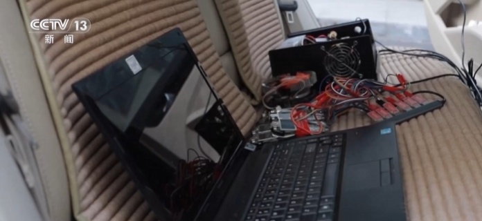 李某位的车里有一个黑色的盒子,盒子里有主板、天线等物品,旁边还放了一台笔记本电脑。