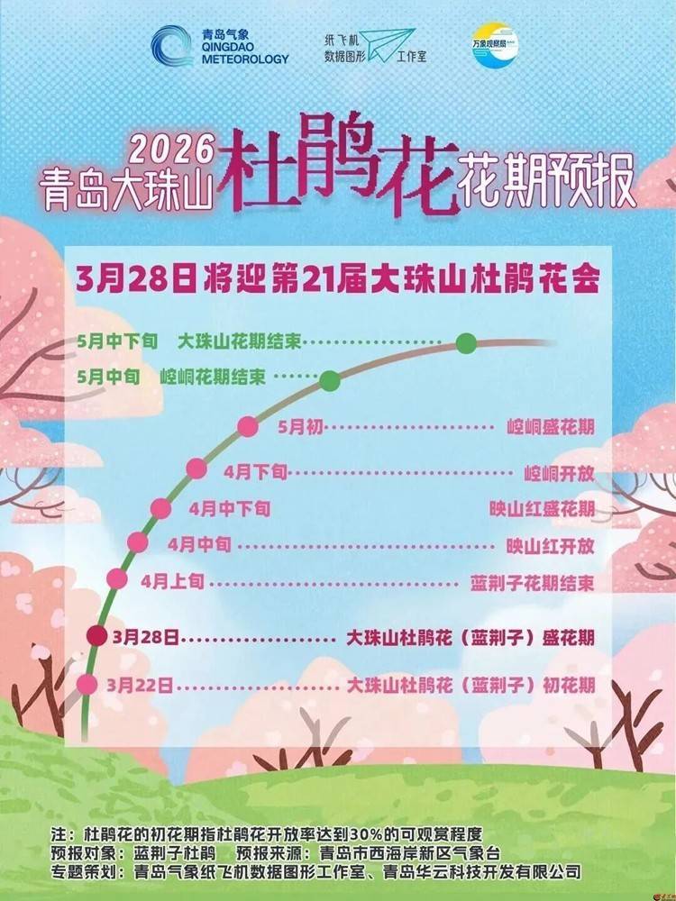 r3月28日,第二十一届青岛大珠山杜鹃花会将正式拉开帷幕!本届花会将以花海为画卷,匠心打造沉浸式互动新场景,陆续推出一系列精彩纷呈的主题活动,涵盖文化展演、互动体验、特色市集等多种形式,为游客带来可观、可游、可感的多元体验。